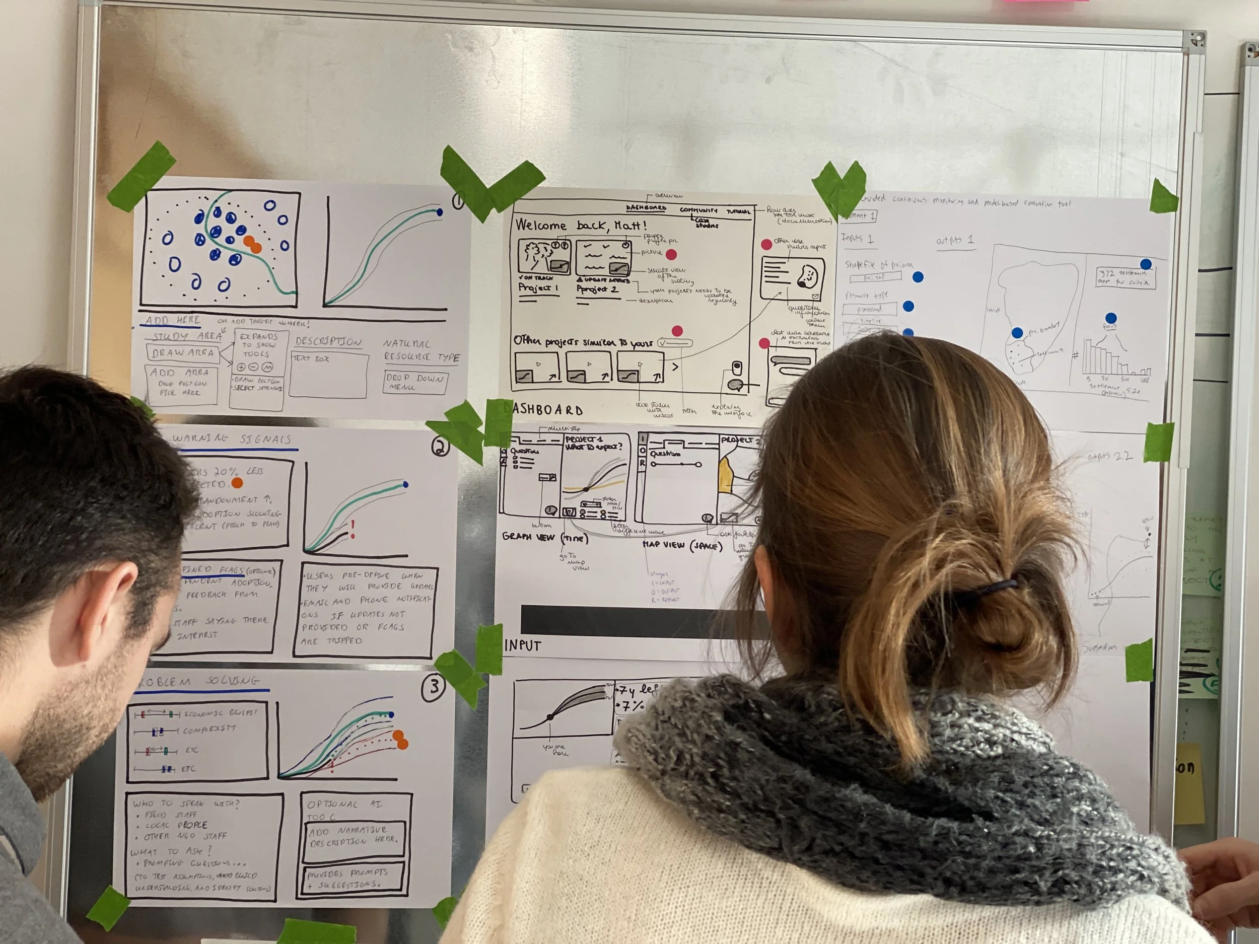 Design sessions to bring multidisciplinary team from idea to conceptualisation. Activities including goal setting, mapping within current systems, benchmarks, co-ideation and conceptualisation. In 5 days, the team has a working prototype that simulates the design idea, ready for validation with the stakeholder.